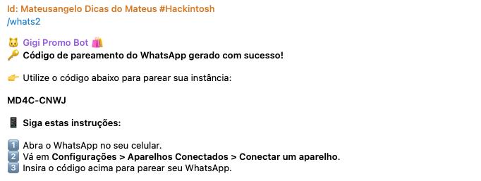 📲 Digite o comando /whats novamente.