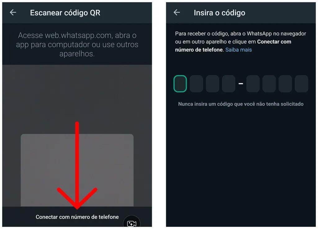 🔍 Antes de começar, confira se o seu WhatsApp suporta a conexão por número de telefone, como mostrado na imagem abaixo: ⬇️
